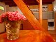 Apartmán má kapacitu: 5 os. Lůžka se nacházejí v ložnicích (celkový počet ložnic je: 2), a také v obývacím pokoji, na celkovém povrchu 53m2. Hosté mají k dispozici vlastní terasu, na které si mohou vychutnat teplé letní večery. Apartmán nabízí výhled na moře. Povolená je příprava jídel na společném grilu. Do ubytovací jednotky je za příplatek možné přijet i s domácím mazlíčkem.