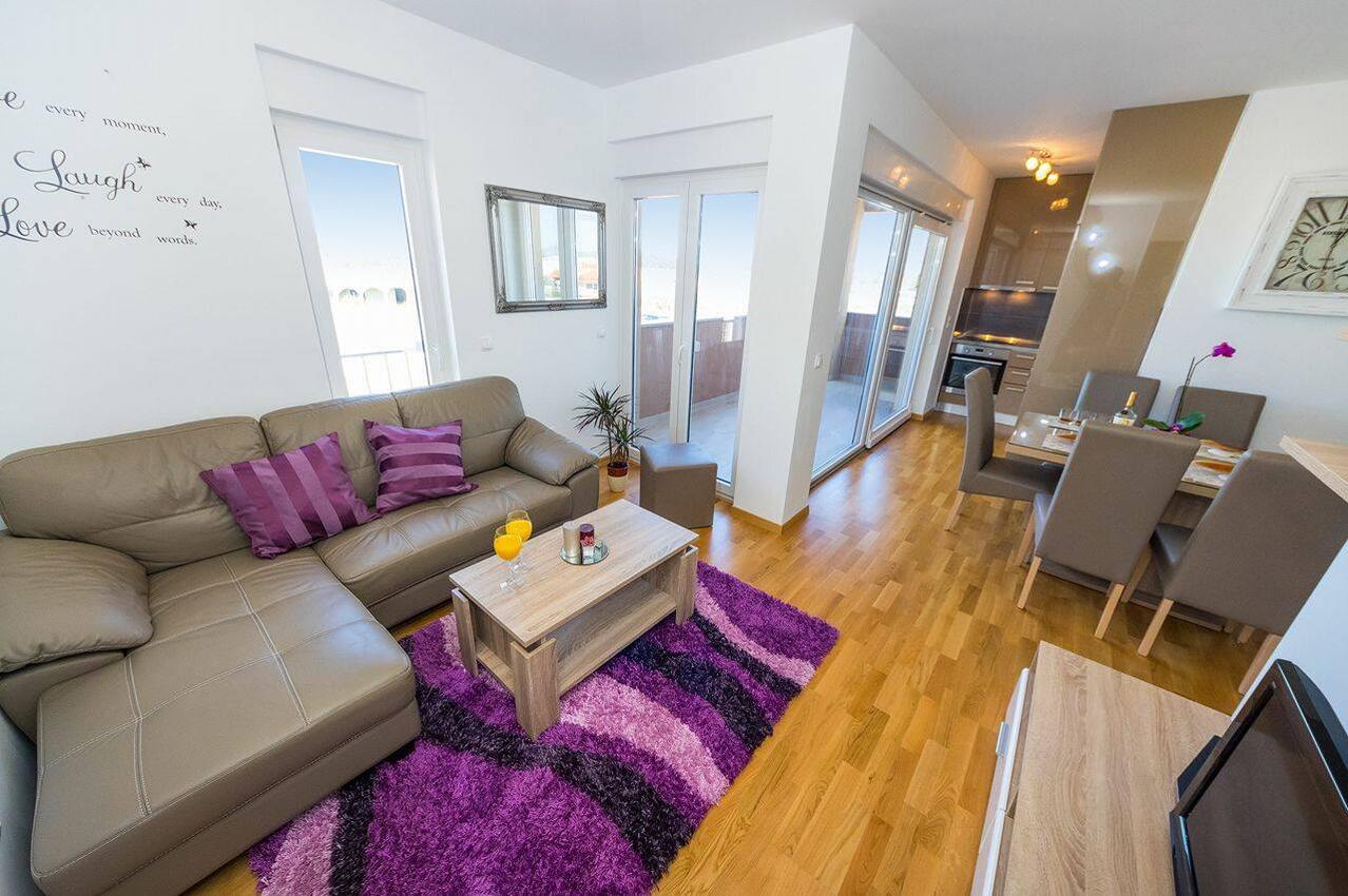 Ferienwohnung bietet Platz für 4 Gäste. Die Betten sind in Schlafzimmern, die es 2 gibt, innerhalb einer Gesamtfläche von 47m2, angeordnet. Die Gäste haben einen eigenen Balkon zur Verfügung, auf der sie in warmen Sommernächten genießen können. Das Apartment bietet Meerblick. Es ist erlaubt, Speisen auf dem Gemeinschafts-Grill vorzubereiten.