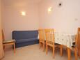 Apartment can accommodate 5 guests. Beds are situated in 2 sleeping rooms, but also in the dining room, within 45m2. Guests can use a private terrace to enjoy the warm summer evenings. The apartment offers the sea view. Food can be prepared using barbecue which is shared with other guests too.
