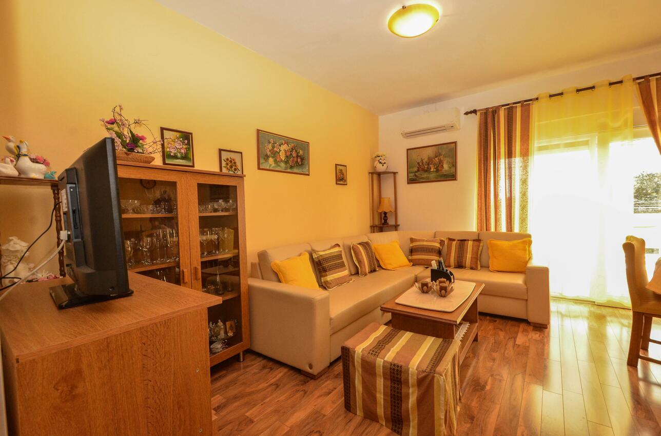 Apartment can accommodate 5 guests. Beds are situated in 2 sleeping rooms, but also in the living room, within 58m2. Guests can use a private terrace to enjoy the warm summer evenings. The apartment offers the sea view. Food can be prepared using barbecue which is shared with other guests too. For the booked accommodation unit the deposit is paid directly to the owner upon check-in (deposit amount is displayed on the website)