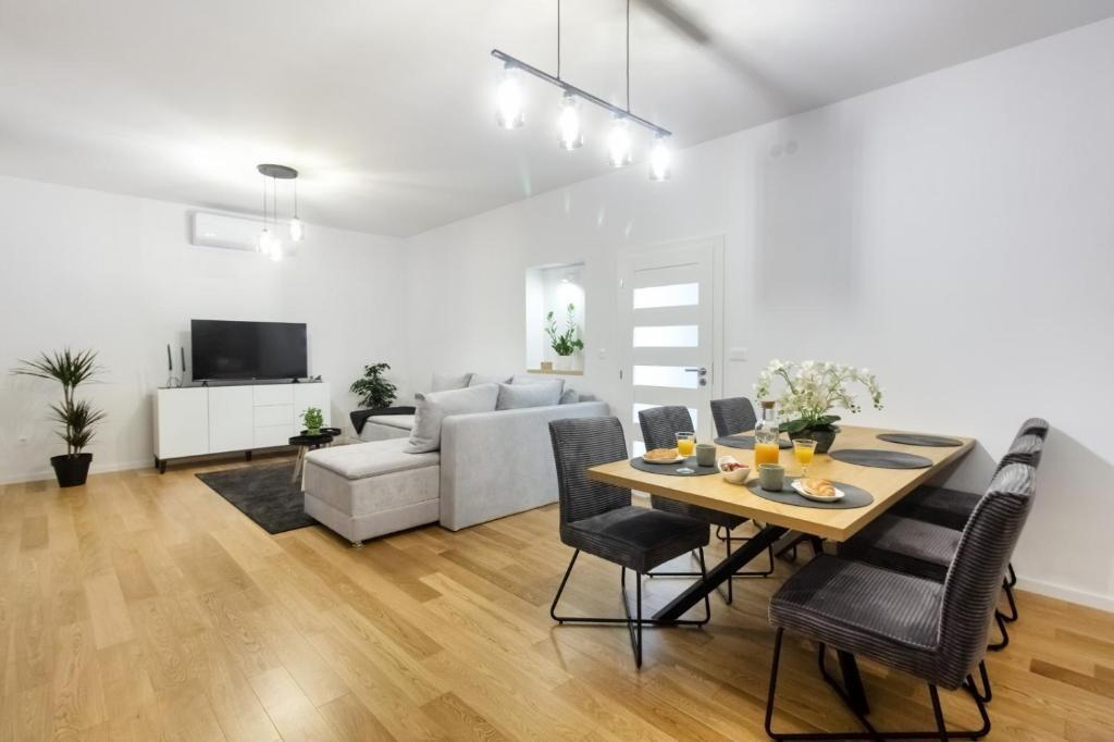 Apartmán má kapacitu: 6 os. Lôžka sa nachádzajú v spálňach (celkový počet spální je: 2), a tiež v obývacej izbe, na celkovej ploche 56m2. Hostia majú k dispozícii vlastnú terasu, na ktorej si môžu vychutnať teplé letné večery. Klienti, ubytovaní v tomto objekte, si môžu oddýchnuť pri súkromnom grile. V ubytovacej jednotke je možné bez poplatku ubytovať domáceho miláčika.